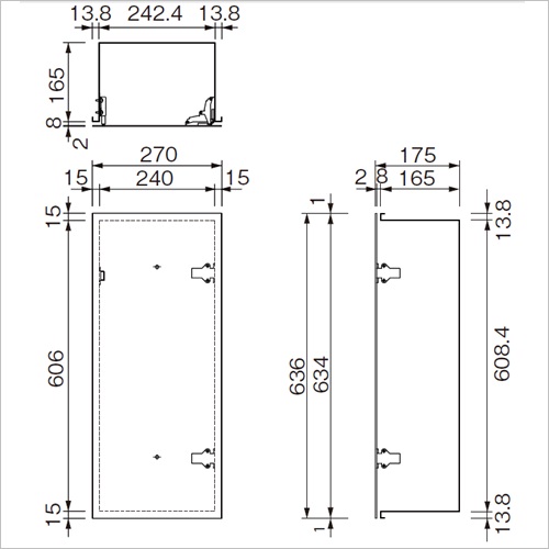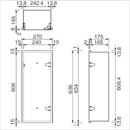 [材質]本体:スチール 扉:スチール [仕上]アクリル焼付塗装 [色]ポリッシュホワイト [サイズ]H636xW270xD175mm [備考]取付ブラケット5-A(別途)使用 [重量]7.2kg