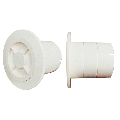 断熱材等による躯体と室内パネルとの隙間を考慮し、スリーブリングを使わなくても施工できるよう本体スリーブ長を80mmにしました。 設置場所に応じてカットできるように、スリーブ部分の25mm・50mmの位置に溝をつけました。 蓋は簡単に開閉できるカセット式です。 壁からの出幅をできるだけ少なくし(7mm)、フラット感を強調したデザインです。 [サイズ]表記による [本体重量]68g [材質]ABS [色]ホワイトグレー ●適用パイプ:SU75 75×80