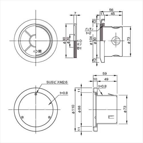 [サイズ]A:104、B:80、D:73、L:45 [本体重量]60g [材質]ABS [色]ホワイトグレー ●適用パイプ:SU75 75× 80 【ご注意】 ・機構(公団)住宅AE-506-A、公共住宅E-407-A 該当品はφ75のみです。 ・都営住宅V-30 該当品はφ75のみです。 ・型(サイズ)により、つば形状が異なりますのでご注意ください。
