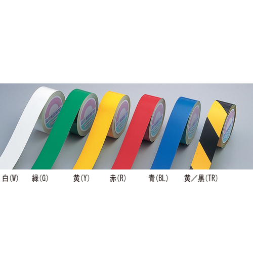 ・反射、蛍光、反射トラ、粗面用反射、床用のガードテープなど各種テープがございます。粗面用反射テープ ・駐車場、工場、道路の支柱など、表面がザラザラした粗面の危険表示に活躍します。 ・通常のテープでは貼ることができなかったコンクリート面や支柱などのザラついた面に貼ることができます。 ・ホコリなどを除去して貼付け、ゴムハンマーなどで叩くと、凹面に馴染み密着して貼り付きます。反射トラテープ ・認識性の高いトラ模様、黄色部は光にあたると強く反射します。ガードテープ(再剥離タイプ) ・屋内床の区域表示用としてご使用いただけます。 ・テープ表面に透明ラミネート加工がしてあり、耐久性にとても優れています。 ・従来の区域表示用テープと異なり、剥がした後、のり跡が残りません。 ・体育館や倉庫などの床を汚さず、きれいに使用できる再剥離タイプです。 [色]白,緑,黄,赤,青 [品番/呼称]GTH-502 [サイズ]W50mm、L20m、t0.2mm [重量]436g [材質]オレフィン樹脂 表面:ポリエステル加工 [ご注意] ・色をご指示ください。商品呼称の後に、色記号〔赤(R),オレンジ(YR),黄(Y),緑(G),白(W),青(BL),蛍光黄(KY)、黄/黒(TR)の記号〕をつけてご指示ください。 ・納期:ご確認ください。