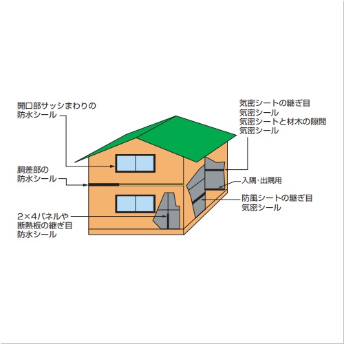 ・手で簡単に切れるので作業性に優れています。 ・平滑面はもちろん、粗面にも強固に接着します。 ・低温及び高温の領域でも接着力が低下しにくいです。 ・強力な接着が持続し、50年以上の耐久性が見込め品格法にも安心です。(JISA6930) ・トルエン・キシレン・可塑剤を使用していません。 ・透湿・防水シートに経年後、化学変化(しわ・トンネル現象)を起こしません。 ・日粘工性能確認品