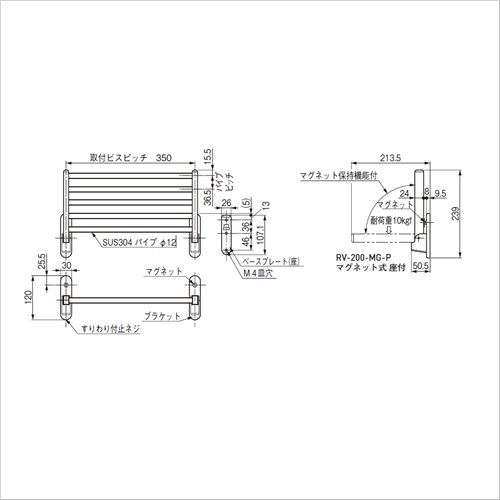 RV-200-KG-Sマグネット式ビス止は、ブラケットにビス穴が開いています(ベースプレート座なし)