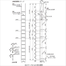 ・縦桟がΦ40丸棒の頑丈なタイプです。頭部Aタイプは、踏棒(KUステップ41)か踏板(KUステップ40)がついています。 ・縦桟がΦ25丸棒のものもございます。(KUステップ42) ・連結の際は、止めビスで抜けを防止します。(縦桟Φ40のみ) [品番/呼称]42C [サイズ]Φ25mm×700mm×400mm [重量]9.3kg [材質]SUS304 [仕上げ]研磨 ●備考:平成25年度版日本下水道事業団仕様、縦桟Φ25、A部踏棒