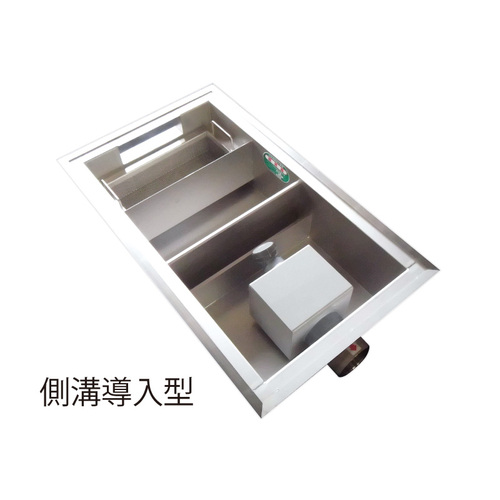 ・本体完全一体型により、土圧耐力とモレ性能を向上させました。 ・導入部、流出部のフランジ接続化により、止水性能の向上と、運搬途上や現場取り回し時の破損防止になっています。 ・H寸法が200(195)mmの浅型タイプです。リニューアルに最適です。 ・厨房レイアウトに応じて特注対応可能です。 ・SUS製深型グリーストラップもご用意しています。 ・日本阻集器工業会認定品です。 [品番/呼称]SK108SA-Z [サイズ]H230mm(225mm)、L1500mm、L1:1574mm、W500mm、W1:590mm、K130mm [材質]SUS304・塩ビ [ご注意] ・人荷重用です。 ・蓋一体型も蓋分離型も、蓋はSS400製の錆止め塗装です。 ・ステンレス製蓋の製作も可能です。 ・流入(上・中・下)、流出(イ・ロ・ハ)を指示ください。 ・パイプ導入式も別途で用意できます。 ・納期:ご確認ください。 ●備考:側溝導入型