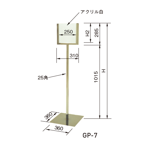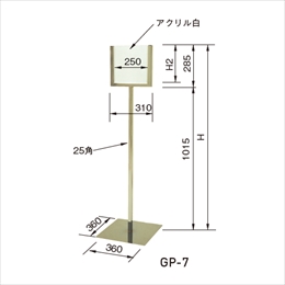 [品番/呼称]GP-7 [サイズ(H×W×H2)]1300mm×250mm×260mm [重量]8.2kg [材質]スチール・アクリル [仕上げ]電気亜鉛メッキ