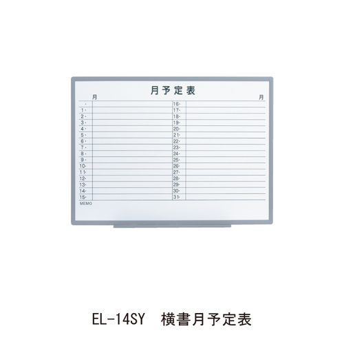 ・場所を選ばない薄型,軽量設計のスタイリッシュなホワイトボードです。樹脂フレームを採用し、従来のアルミフレームボードに比べ重量が半分以下になりました。 ・マグネットも使用でき、しかも超軽量・薄型設計によりどこでも気軽に設置ができ、持運びも容易です。 ・タテ・ヨコどちらでも使用できます。(無地のみ) ・取付け部位は脱落防止構造となった安全設計です。(取付ネジ別途) ・グリーン購入法適合商品です。 [色]ホワイト [品番/呼称]EL-12SY [サイズ]W1200mm、H900mm [重量]3.2kg [材質]スチール [ご注意] ・納期:ご確認ください。 ●備考:横書月予定表