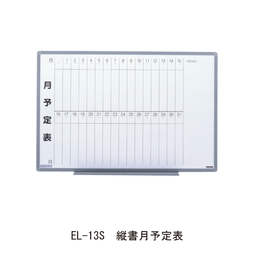 ・場所を選ばない薄型,軽量設計のスタイリッシュなホワイトボードです。樹脂フレームを採用し、従来のアルミフレームボードに比べ重量が半分以下になりました。 ・マグネットも使用でき、しかも超軽量・薄型設計によりどこでも気軽に設置ができ、持運びも容易です。 ・タテ・ヨコどちらでも使用できます。(無地のみ) ・取付け部位は脱落防止構造となった安全設計です。(取付ネジ別途) ・グリーン購入法適合商品です。 [色]ホワイト [品番/呼称]EL-13S [サイズ]W900mm、H600mm [重量]1.7kg [材質]スチール [ご注意] ・納期:ご確認ください。 ●備考:縦書月予定表