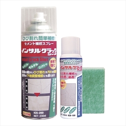 この3点セットで補修は完璧。 [入数]6 [内容量] ・インサルクラックシャット230ml ・インサルクラックボンド100ml ・スポンジ1個 (施工可能6〜8m) [用途] ・壁面の細かいひび割れや汚れの補修 ・塗料の下地調整補修