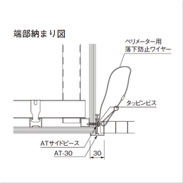 ペリメーター用落下防止ワイヤーセットです。 ●セット内容:アイターミナル付ワイヤー(L=300)、甲丸スナップ、ナベビス(M4×25mm) 【ご注意】割付図の通り取り付けをお願いします。( ルーバー端部に穴をあけスナップを通し、壁側をナベビスで取り付けます。)
