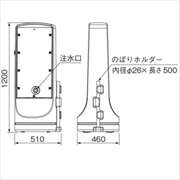 サインとのぼりの相乗効果で、効率的な集客ができます。 のぼりホルダー付き [本体色]イエロー [サイズ]H1200mm×W510mm×D460mm [重量]6.6kg [材質]ポリエチレン樹脂 [水満量時重量]約59kg