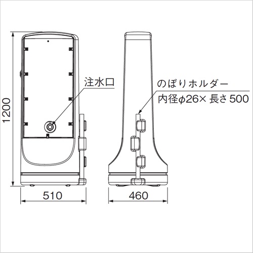 ・色褪せしにくい視認性のよいカラーです。 ・強風時でも倒れにくい水タンク構造です。 ・転がせるので移動が楽に行えます。 ・人や車にやさしいプラスチック製です。 ・環境にやさしい再生材を使用しています。 ・面板が簡単に差替えできます。