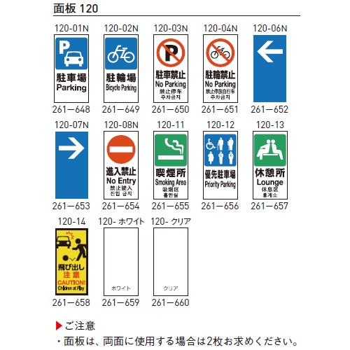 ・面板は別売です。両面に使用する場合は2枚必要です。 ・面板で表示無しのホワイトとクリアもご用意できます。お問い合わせください。
