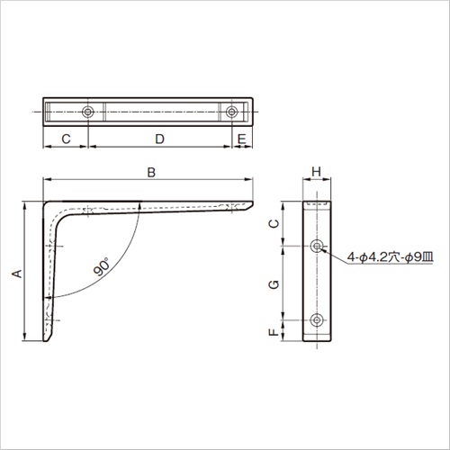 [サイズ]A200mm、B250mm、C40mm、D185mm、E25mm、F25mm、G135mm、H24.5mm [本体重量]200g [付属品]スチール十字穴付皿タッピンネジ 4.5×22:1本、4.5×28:2本、4.5×38:1本、キャップ:4個 [材質]ADC [仕上]粉体塗装 [耐荷重]30kgf 【ご注意】耐荷重は、取付け下地が堅い場所を前提としております。入数単位にて受注承ります。