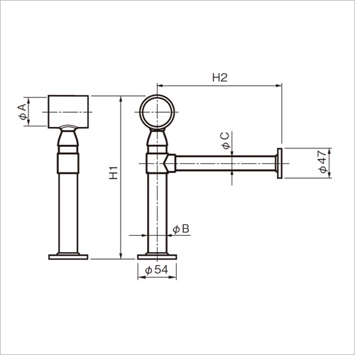左右の勝手違いの必要がなく、ブラケットの回転によって左右の使用が簡単に切り替えられます。 また、現場の都合により、巾木部位置(上下、左右)の変更も巾木部の回転締付により随意変更可能です。 [サイズ]H1:213mm、H2:180mm、A:32.5mm、B:25mm、C:19mm [本体重量]491g [付属品]SUS皿木ネジ3.8×32:3本(床用) SUS皿木ネジ3.1×20:3本(壁用) [材質]SUS304・ZDC [仕上]研磨・電気亜鉛メッキ 【ご注意】取付ピッチは500mm以下をお薦めいたします。