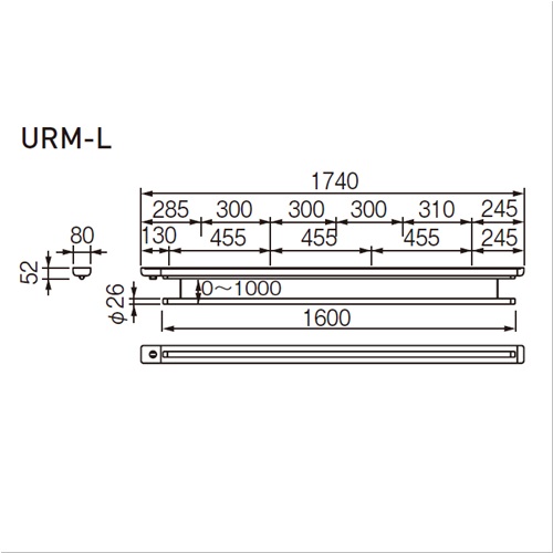 ・URM(天井面付)型は野縁材にネジ止めします。図面を参考に100kg程度の荷重に耐えられるように補強してください。 ・UR型には専用の竿が付属します。(市販の竿との交換はできません)