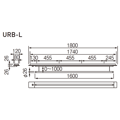 ・URB(天井埋込)型はあらかじめ下地工事が必要です。図面を参考に100kg程度の荷重に耐えられるように下地を作ってください。 ・UR型には専用の竿が付属します。(市販の竿との交換はできません)