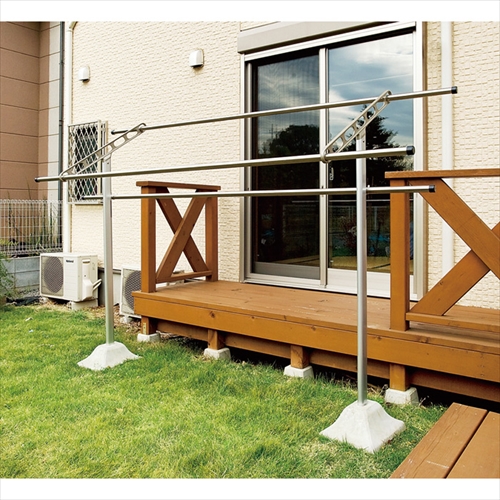 ・マンション1階の庭付きバルコニーや、戸建住宅の庭置き式として最適です。 ・手摺り・腰壁のない1階の庭付きバルコニーの場合でも、上階の物干金物と景観を合わせることができます。 ・外観を重視し本体のポール部分にはアルミ材を採用。 ・竿掛け部分(アーム)との違和感がありません。 ・高さ1726mmの設定のため、小柄な方でも手が届きます。 ・樹脂ベースII(別売)は、ベース本体の中に水や砂を入れて簡単に使用することができます。(ベース内容量 水のみ:16kg)また、キャップがネジ式のため外れません。