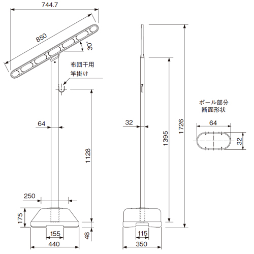 [サイズ]850mm×1726mm [本体重量]2.5kg [材質]ポール:アルミ/アーム:ADC [仕上]ポール:アルマイト/アーム:アクリル焼付塗装 [色]ポール:シルバー/アーム:ステンカラー