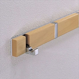 コート掛け、帽子掛けなど多用途でご使用いただけるブラインドフックです。折りたたみ式でシンプルなデザイン。 [サイズ]400x52.8x54.8mm [本体重量]640g [付属品]SUS十字穴付皿タッピンネジφ5×40:3本(AC770) スチール十字穴付皿タッピンネジφ4×40:8本(AC823)、6本(AC822) [材質]天然木(ビーチ)・ZDC・アルミ [耐荷重](1フックあたり):5kgf