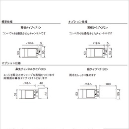 ・最小のパブリックスペースを確保する高剛性・軽量・高平滑性に優れたコンパクトサイズの庇です。 【規格最小パネルサイズ1200×2000】 ・規格化されたアルミ接着ハニカムパネルの採用で、低コスト、短納期を実現しました。 ・凹凸のないすっきりとした軒下空間を創り、2~3本の斜材で長さL寸法2000~6000までを支持することが可能です。 ・ディティールにこだわったブラケットデザインや、幕板をはじめとする機能別のオプションもご用意しております。 [品番/呼称]AS-1220 [サイズ]W1200mm、L2000mm、t53mm [重量]35kg [材質]アルミ [仕上げ]フッ素樹脂焼付塗装 [ご注意] ・価格にはハニカムパネル本体・幕板・水切・斜材・躯体側ブラケット・パネルブラケット・六角ボルトを含んでおりますが、アンカー・シーリング材は含まれておりません。 ・規格品以外の特殊寸法、特殊納まり寸法は、受注生産となります。お問い合わせください。 ・オプション部品の鼻先チャンネルタイプ及び樋タイプのチャンネル、樋の取付けは先端先側のみです。両側面は幕板タイプ(F1)です。 樋は両端で垂れ流しとなります。(両端蓋はありません)詳しくはお問い合わせください。 ●斜材(本):2 ●取付寸法:(1)500mm、(2)700mm、(3)100mm、(4)400mm、 ●仕様:表裏面板:アルミニウム板A3004P 表面処理:フッ素樹脂焼付塗装 パネル用接着剤:弾性シリコーン系接着剤 枠・幕板・水切:アルミ押出形材A6063S 斜材:SUSヘアライン仕上げ コア材:アルミ箔 A3003H 許容荷重:耐風圧3000N/平方メートル以下 積雪1m以下