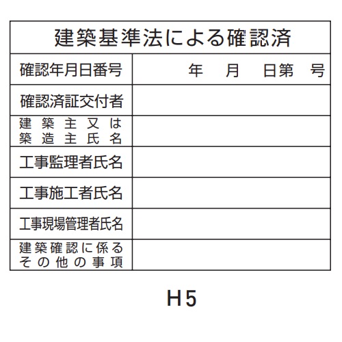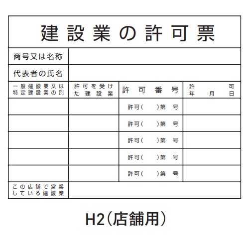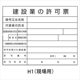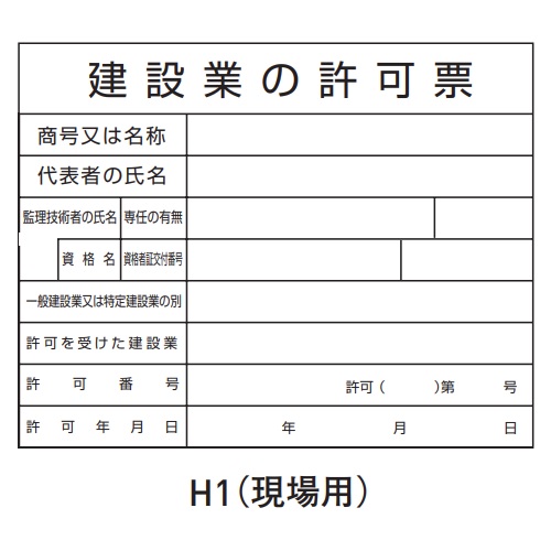 建築業許可標識を( )内よりご指示ください(H1、H2、H4、H5)