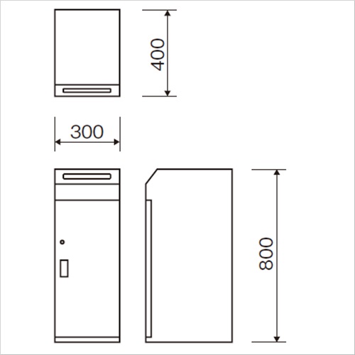 [色]シルバーメタリック [品番/呼称]KIM-S-3 [サイズ]H800mm、W300mm、D400mm、t(本体)1.2 [重量]16.2kg [材質]スチール [仕上げ]粉体塗装 [投入口サイズ]30x230mm ●KIM-S-3・4(のみ)同梱シール LA-47表示シール(ユポ+ラミネート貼)W170×H55