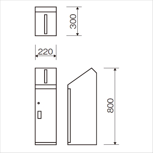 [色]シルバーメタリック [品番/呼称]KIM-S-4 [サイズ]H800mm、W220mm、D300mm、t(本体)1.2 [重量]10.8kg [材質]スチール [仕上げ]粉体塗装 [投入口サイズ]230x20mm ●KIM-S-3・4(のみ)同梱シール LA-47表示シール(ユポ+ラミネート貼)W170×H55
