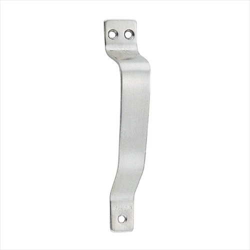 開き扉一般用です。 公共住宅物入れ扉にご使用いただけます。 [サイズ]A97mm、B16mm、C84mm、D20mm、E12mm、t2mm [本体重量]33g [付属品]SUS十字穴付丸皿木ネジ 半丸 2.7×16:3本 [材質]SUS304 [仕上]ヘアーライン