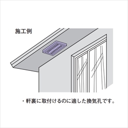 軒裏に取付けるのに適した換気孔です。 [本体重量]330g [付属品]SUS十字穴付タッピンネジ3.5×30:6本 [材質]SUS304 [仕上]アクリル焼付塗装・クリア [有効換気面積] 87.6平方センチメートル