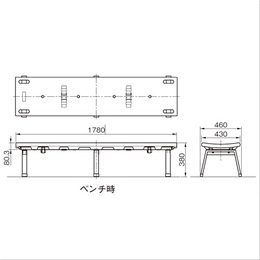 ・ベンチ時のサイズは約W1780×D460×H380mm、担架時のサイズは約W1780×D430×H81mmです。 ・ベンチ時の重量は約22.5Kg、担架時の重量は約7.5Kgです。