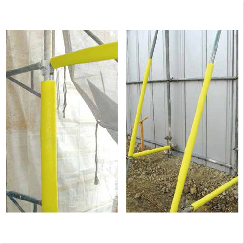 ・柱、間口枠、サッシ、手すり、単管足場などあらゆる箇所の養生に最適です。 ・現場の危険防止にも役立ちます。 ・テープ不要、取付け、取外しが簡単です。 ・塩ビ製のものに比べて傷がつきにくく、軽くて耐衝撃性に優れています。 ・軽くて簡単にカットできます。 ・丸型のため、どのような対象物にもフィットしやす丸い形状になっています。 ・ポリエチレン製ですので、焼却してもダイオキシンが発生しません。