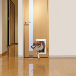 ペットが出入りしやすい機能的なペットドアです。 小さな子犬から大型犬までペットの大きさに合わせた各種サイズをご用意しました。 素材は衝撃に強いABS樹脂を採用しています。 [サイズ]有効開口寸法:W178mm×H285mm 扉加工寸法:W204mm×H331mm [材質]ABS・塩ビ ●備考:厚31〜44 【ご注意】ドア・壁面への加工は、付属の型紙をご使用ください。