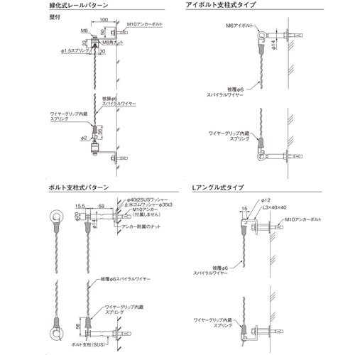 ・少ない部材の構成なので低コストで施工することができます。 ・コンクリート壁、ALC壁への施工が可能です。また、ワイヤーは現場に合わせてカットできるので設置が容易です。 ・壁面からワイヤー持出し距離は、約80〜90mm。壁面と植栽との間に充分な距離を確保できるので壁面を汚したり傷めたりしません。また外断熱効果を高めます。