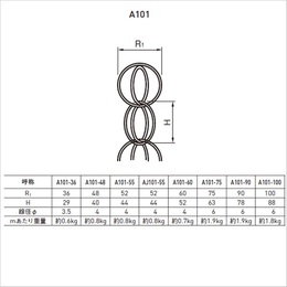 A101-36〜100 スタンダード 丸線 銅、真鍮、ステンレス ・リングを連結したスタンダード商品でオーソドックスな万能型です。 [色]ステンレス [品番/呼称]A101-48 [サイズ]L3000mm [mあたり重量]約0.8kg ●R1:48、H:40、線径Φ:4