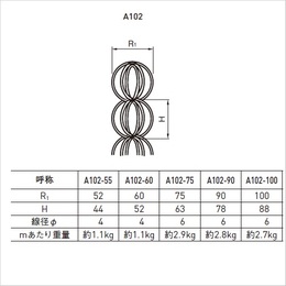 A102-55〜100 トリプルクロス 丸線 銅、真鍮、ステンレス ・スタンダードよりリングを多くした水流れのよい高級品です。 [色]ステンレス [品番/呼称]A102-75 [サイズ]L3000mm [mあたり重量]約2.9kg ●R1:75、H:63、線径Φ:6