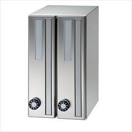 集合タイプ郵便受 前入前出 多段式省スペースタイプ [サイズ]H360mm、W200mm、D278mm [重量]3.9kg [材質](本体)フェライト系ステンレス NO,4・2B仕上 0.7t(扉)フェライト系ステンレス ヘアライン仕上 0.8t(差入口プレート)フェライト系ステンレス ブラスト調焼付塗装 0.8t(名札)ポリカーボネート樹脂 [錠前]myナンバー錠 [投入口]333mm×21mm