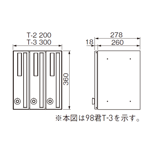 ・98君Yは「横型:前入前出」(BL認定品)タイプです。98君Tは「縦型:前入前出」タイプです。 ・一戸あたりの箱寸法が、横型の場合H100(縦型の場合はW100)の省スペースタイプです。 ・錠前は暗証番号の再設定が可能なmyナンバー錠を採用しました。