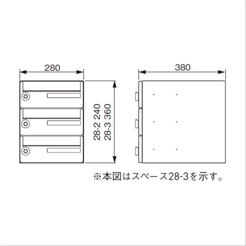 集合タイプ郵便受 前入前出 多段省スペースタイプ [サイズ]H240mm、W280mm、D380mm [重量]3.7kg [材質]ステンレス [錠前]myナンバー錠 [投入口]252mm×29mm
