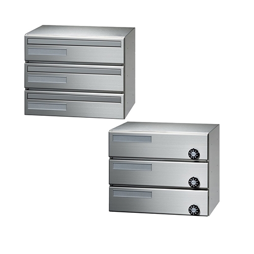 集合タイプ郵便受 前入後出 多段式省スペースタイプ [サイズ]H300mm、W360mm、D294mm [重量]6kg [材質](本体)フェライト系ステンレス NO,4・2B仕上 0.7t(前面・扉)フェライト系ステンレス ヘアライン仕上 0.8t(差入口プレート)フェライト系ステンレス 0.8t ブラスト調焼付塗装(名札)ポリカーボネート樹脂 [錠前]myナンバー錠 [投入口]333mm×21mm