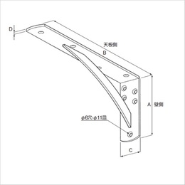 耐荷重はブラケット本体のみの値です。 取付けの際は下地の強度、芯材の有無、天板の強度等に充分ご注意ください。 [サイズ]A250mm、B500mm、C38mm、D4.5mm [本体重量]1500g [付属品]壁側:スチール十字穴付皿タッピンネジ 5.0×45 天板側:スチール十字穴付皿タッピンネジ 5.0×16 (頭部塗装:ホワイト、本数は皿穴数と同数) [材質]スチール [仕上]粉体塗装 [皿穴数]壁側:5カ所 天板側:4カ所 [耐荷重]80kgf [入数]2