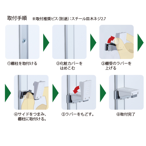 差し込むだけで棚柱に固定できます。