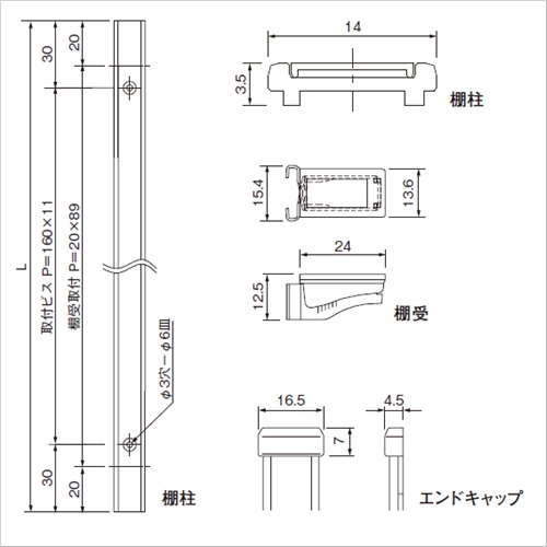 フラッシュ棚柱 LA-502 ホワイト