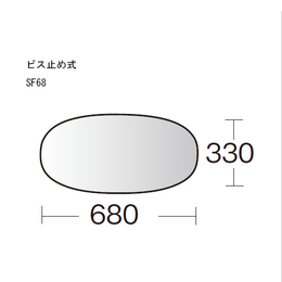 [品番/呼称]SF68 [取付方法]ビス止め [材質]アクリル(ミラー) [像の大きさ(曲率半径)]860R [アーム長さ]250mm [天井吊下げの場合](a)の長さ:SF68 約405mm [重量]0.83kg [サイズ]H330×680mm