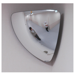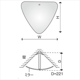 L字路に最適。危険予知、衝突防止に。 [品番/呼称]LC7 [取付方法]壁付け [材質]アクリル(ミラー)・アルミ(金具) [サイズ]H279mm、W328mm [色]グレー(金具) [重量]0.33kg [像の大きさ(曲率半径)]359R