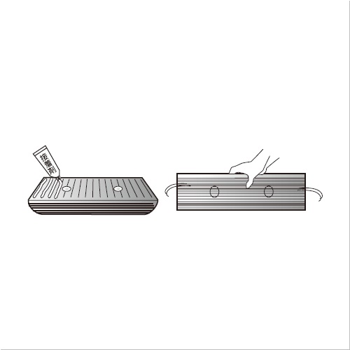 ・ 取付位置を決めたら、専用接着剤をカーストッパー600裏面に塗布し、設置する地面に押しつけてください。より強度が必要な場合は、オールアンカーまたはアスファルトアンカーを必ず使用してください。