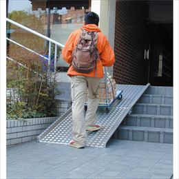 ・右表は車椅子で使用する場合の一般的な安全角度目安です。使用者の体力や車椅子の性能により若干の違いがあります。 ・車輌用としては、ご使用いただけません。 ・アルミの板厚はRA・RB・RCタイプで3.5mm。RA-N(ノンスリップ特殊塗装)タイプで3.0mm。 ・長さは有効幅です。脱輪防止側壁のあるRA、RB、RA-Nタイプの外形寸法は905mmとなります。