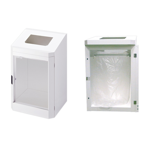 ・内部の投入物が見える大容量70リットルの大型屑入です。 ・不要物の混入や回収時期が管理しやすく目視で確認できます。 ・汎用性の高い角穴で全ての分別に対応、傾斜のついた投入口はゴミを入れやすい設計になっています。 ・バケツを使用せずにポリ袋をひっかけるだけです。 ・アジャスター付です。 ・オプションで3Dアイコン(6,500円)の取付けも可能です。別途、お問い合わせください。 [色]ホワイト [サイズ]幅550mm、奥行481mm、高さ902mm [重量]21kg [材質]電気亜鉛メッキ鋼板 [仕上げ]粉体塗装 [ご注意] ・屋内タイプです。 ・本体に内容器およびポリ袋(70リットル)はついておりません。