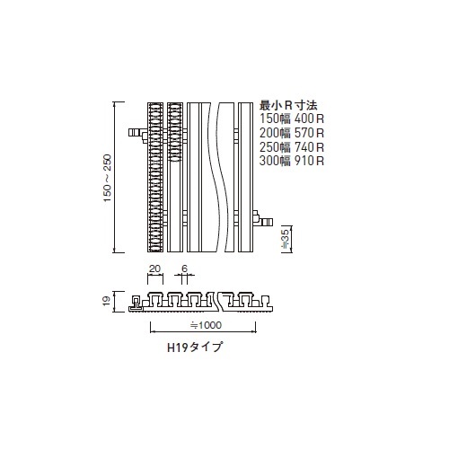 ・曲線タイプは、設置する曲線(R)に合わせて対応が可能です。