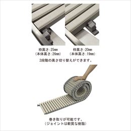 ・ジョイント部をスライドさせる事で25mmと20mmの2種類の枠の高さに切り替えが可能です。新築だけでなく、リニューアル物件にも汎用性を確保しています。