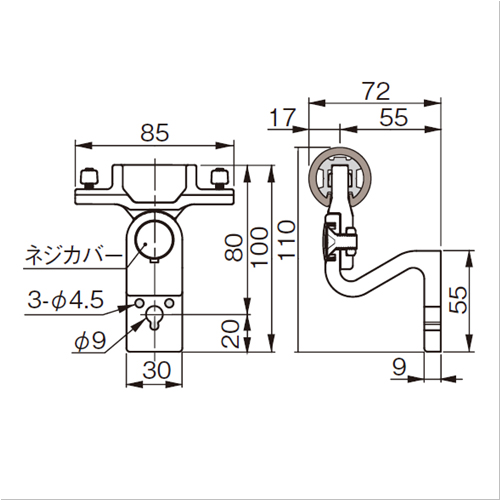 ・タイヤ付ハンドレールを後入れできるブラケットにはめ込んでネジ止めする だけなので施工が簡単です。 ・フレキシブルジョイントは自在に曲げられるので、施工現場での芯材曲げ加工やタイヤはめ込み作業が不要です。 [色]シルバー [品番/呼称]E115 [サイズ]85mm×100mm×60mm [重量]140g [材質]アルミ・ABS樹脂 [仕上げ]アクリル焼付塗装 [ご注意] ・ブラケットは取付け間隔900mm以内でご使用ください。また、端部・接続部からは150mm以内にブラケットを取付けてください。 ・ネジの締付けは確実に固定している事を十分にご確認ください。 ・色をご指定ください。 ・納期:ご確認ください。